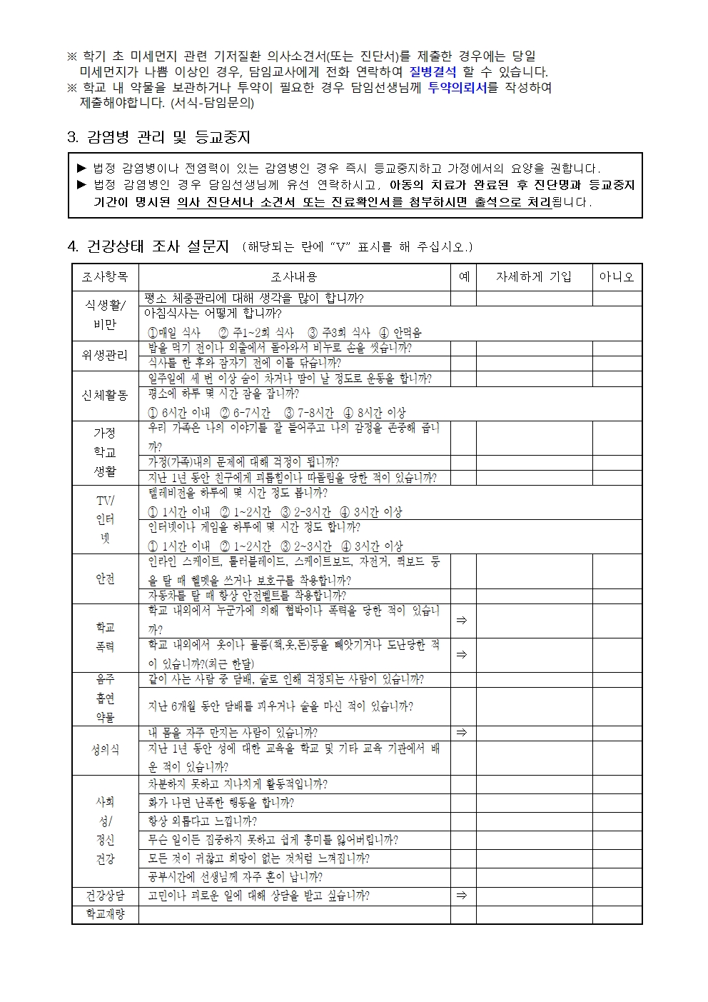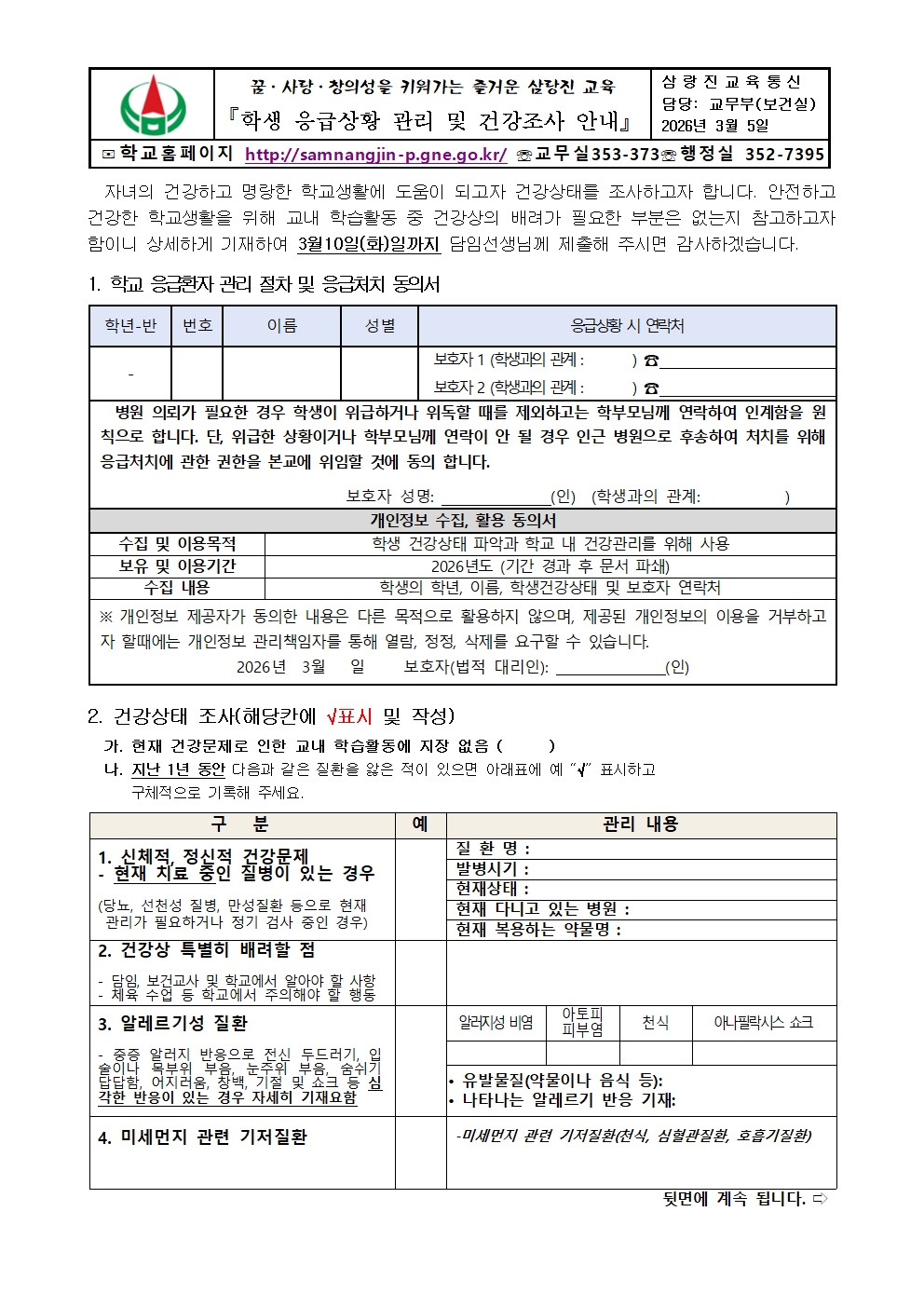 2026년 학생 응급상황 관리 및 건강조사 안내