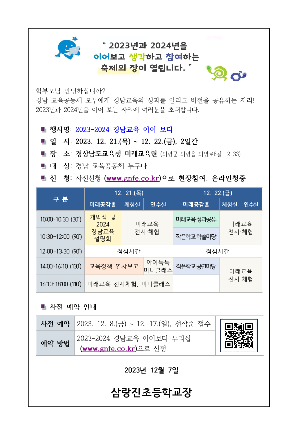 '2023-2024 경남교육 이어보다' 행사 신청 및 참석 협조
