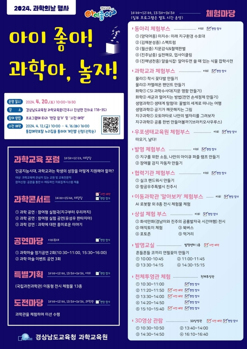 경상남도 교육청 과학교육원에서 추진하는 2024. 과학의날 행사를 안내드리오니 많은 참여바랍니다.